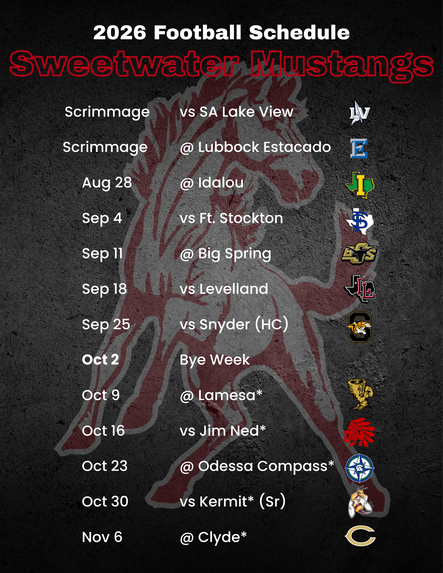 2026 Sweetwater Mustang Football Schedule